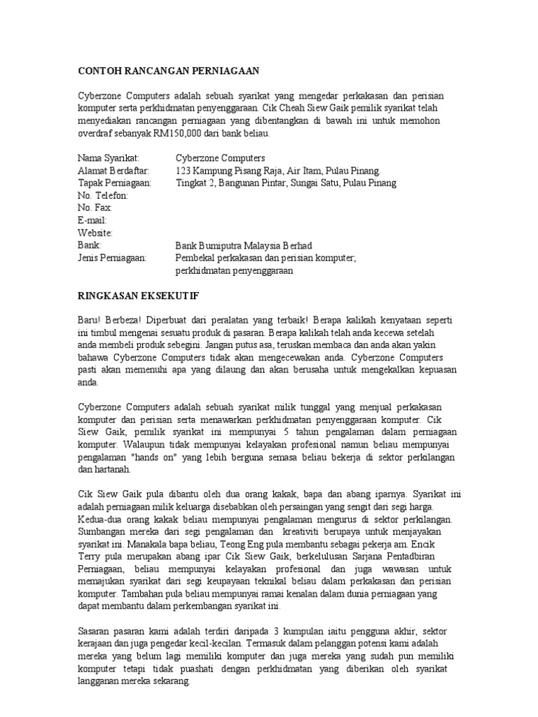 Contoh Rancangan Perniagaan Kedai Komputer Pdf
